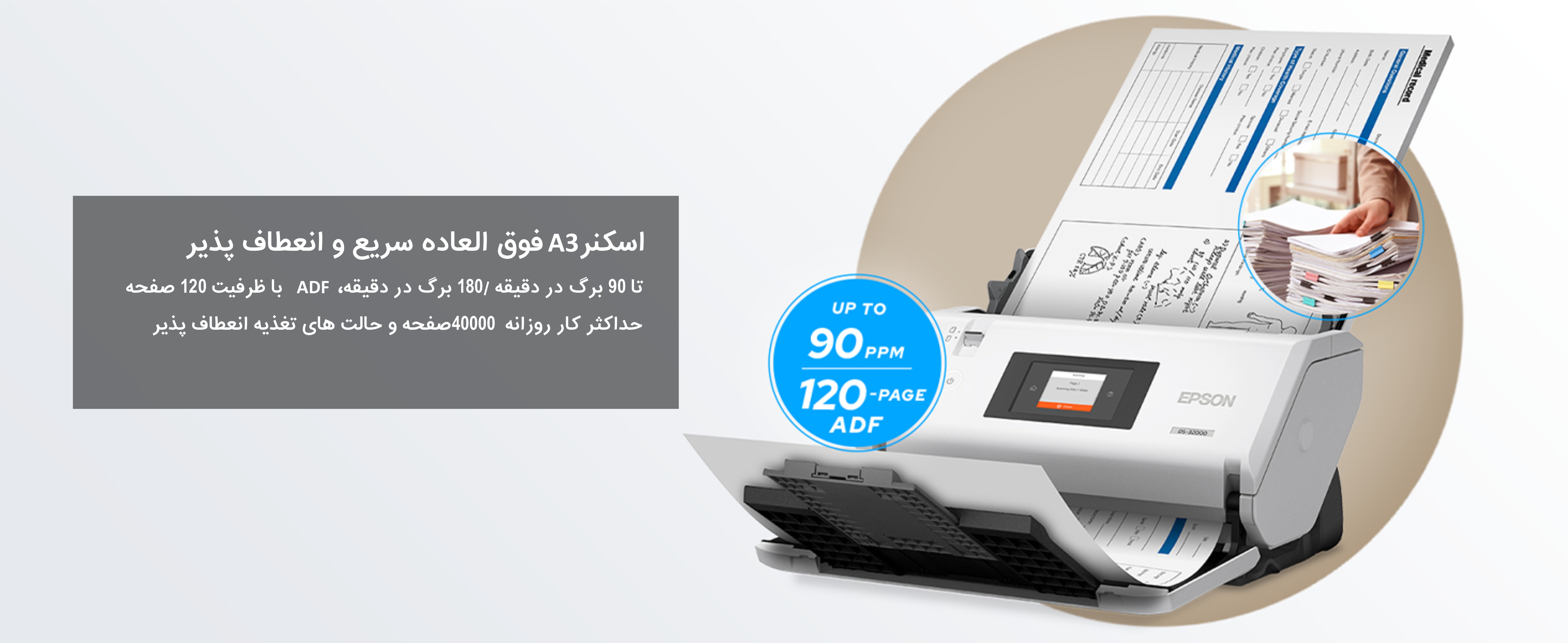 اسکنر بایگانی DS-32000 که برای دفاتر شلوغ طراحی شده است، انجام هر پروژهای را آسان میکند. این اسکنر سرعتی تا 90 برگ در دقیقه ارائه میدهد و شامل مجموعهای از ویژگیهای بهرهوری مانند تغذیه خودکار اسناد 120 برگی، اسکن دو طرفه، صفحه نمایش لمسی 2.7 اینچی قابل برنامهریزی و عملکرد محافظت از کاغذ است - همه در یک طراحی انعطافپذیر. با پشتیبانی از کاغذهای متنوع، گزینههای تغذیه عمودی و افقی را ارائه میدهد. این اسکنر با گنجایش برگههایی تا 12 اینچ در 17 اینچ، همچنین میتواند صفحات تا شده، کارتهای پلاستیکی، پاکتهای مهر و موم شده، گذرنامهها و موارد دیگر را اسکن کند. DS-32000 جمع و جور با فضای کاری شما متناسب است و ذخیرهسازی را آسان میکند. به علاوه، چرخه کاری روزانه 40000 صفحهای را ارائه میدهد.